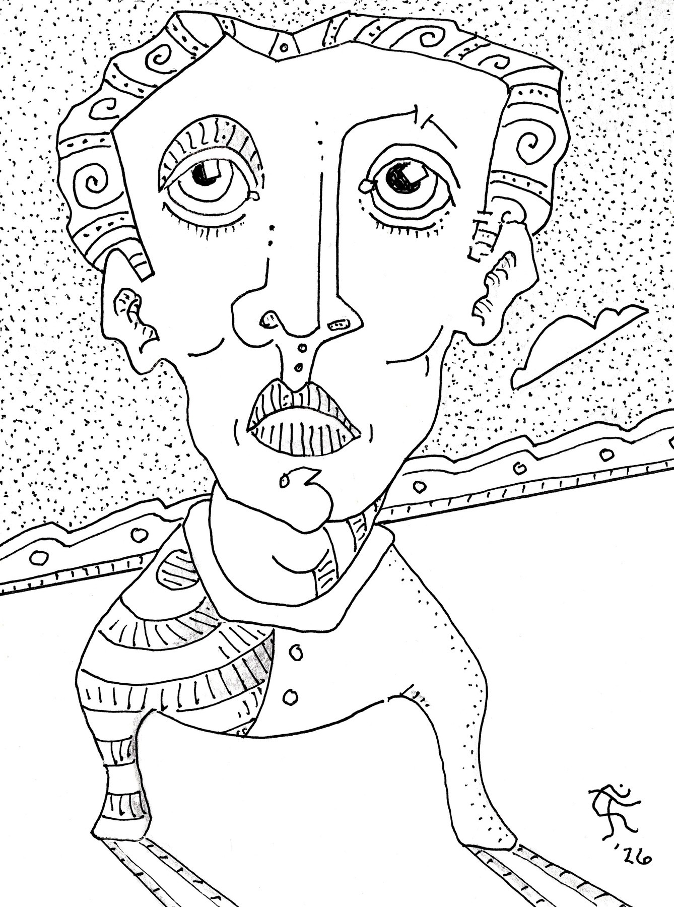 Are we actually able to be startled, shocked or surprised anymore? Isn't it easier to wear our societal mule blinds and keep our noses to the hypothetical grindstone? If we look up, we might see something unsightly or outside our tiny island of belief. This is a 6 by 4.5 inches gel pen with just a touch of gray Crayola Twistable on medium bond acid-free paper. Original Jones Art does a lot of unfashionable thinking and questionable seeing in northwest Austin, Texas.