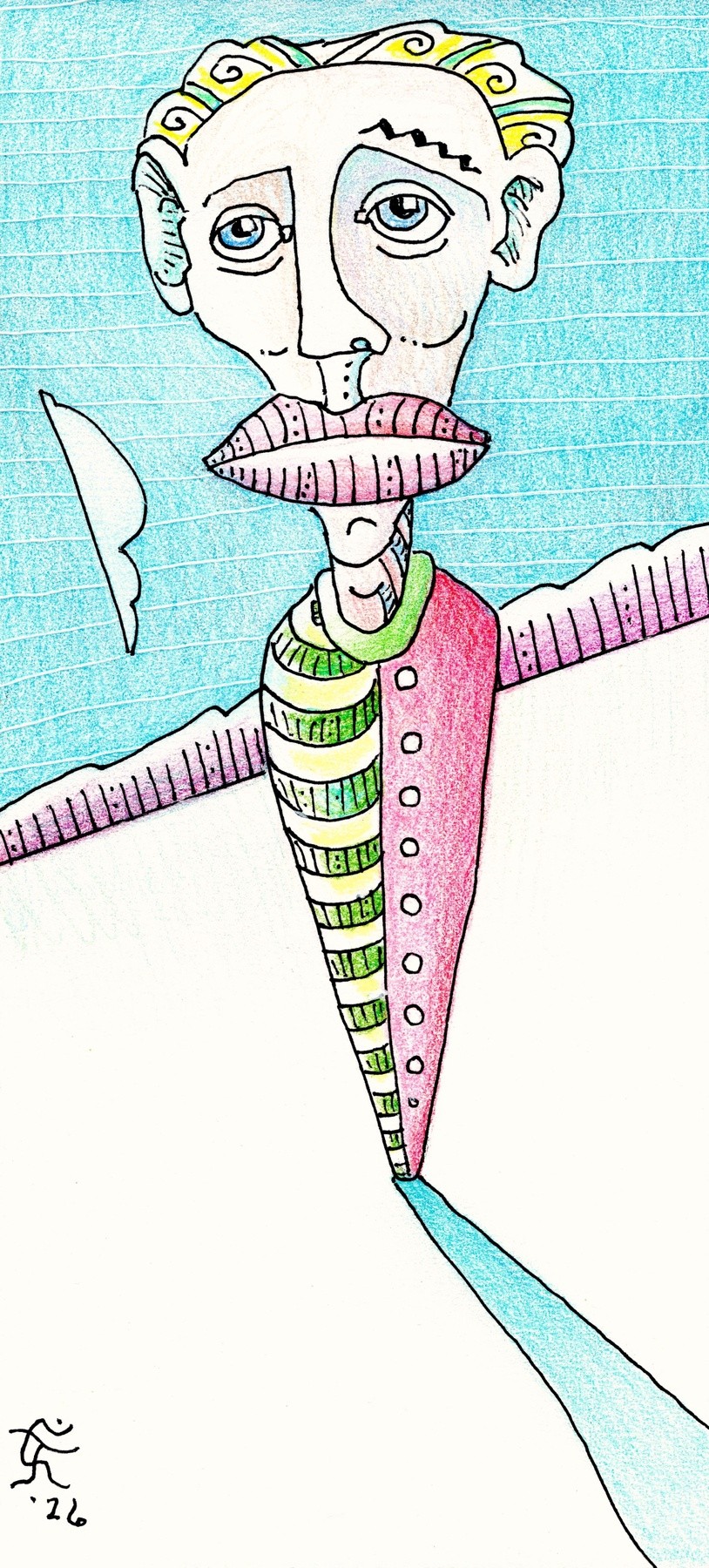 I think the title is self-explanatory but who knows these days. This is a 8 by 4 inches gel pen with color pencil drawing on medium bond acid-free paper. Original Jones Art wonders if humanity will ever have the depth to go beyond reflective surface in his quest for value and worth.
